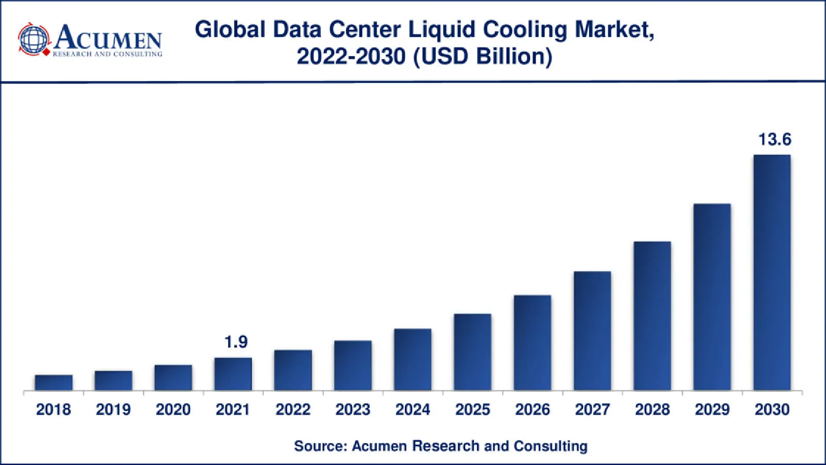 Et le marché est d’accord. Selon les analystes interrogés, le refroidissement liquide est maintenant considéré comme une technologie grand public en plein essor, affichant un taux de croissance annuel composé (TCAC) à deux chiffres. Selon la firme d’analyse Acumen Research, le marché pourrait même atteindre une valeur de 13,6 milliards de dollars américains d’ici 2030.